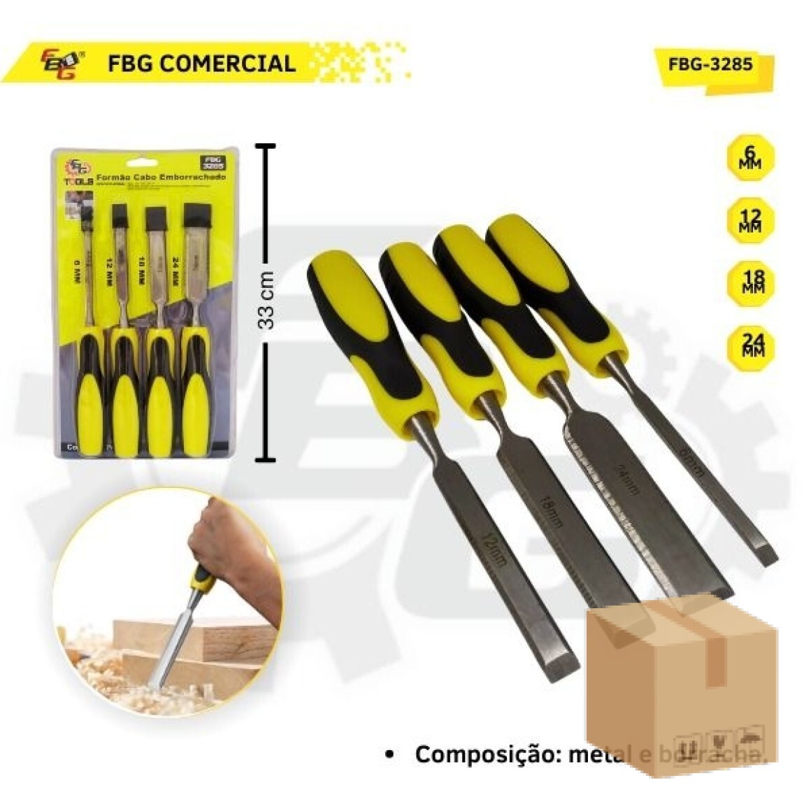 Kit 4 peças formão FBG  foi projetado para oferecer praticidade, qualidade e durabilidade. Fabricado com materiais de alta qualidade.