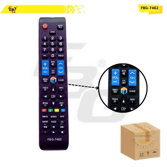 Controle Remoto compatível com TV Samsung Smart - Modelo FBG-7462