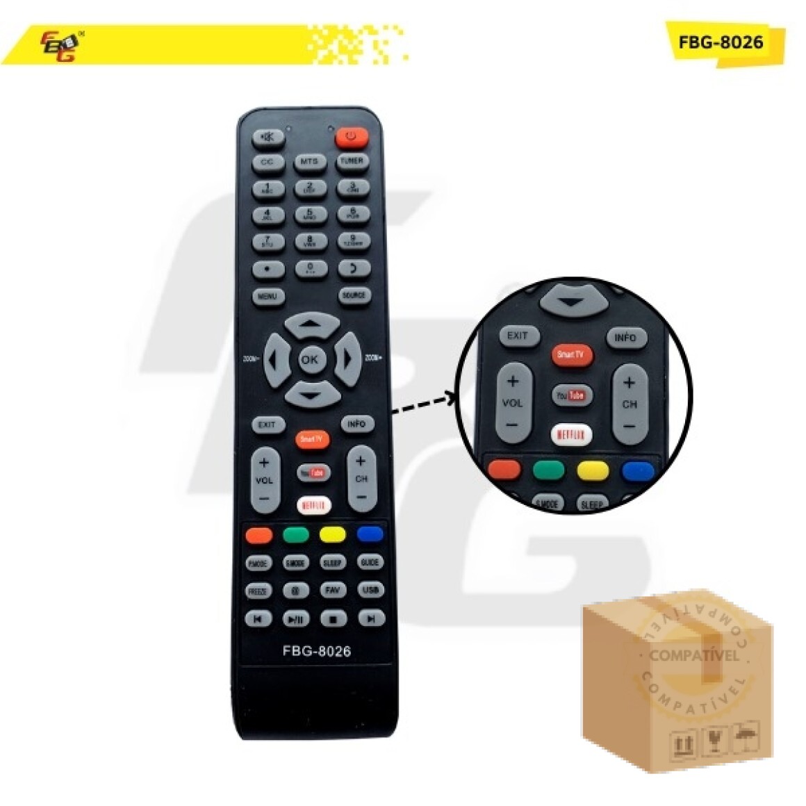 FBG 8026 SMART COMPATÍVEL C/ TOSHIBA TCL RC199E C/ YOUTUBE E NETIFLIX