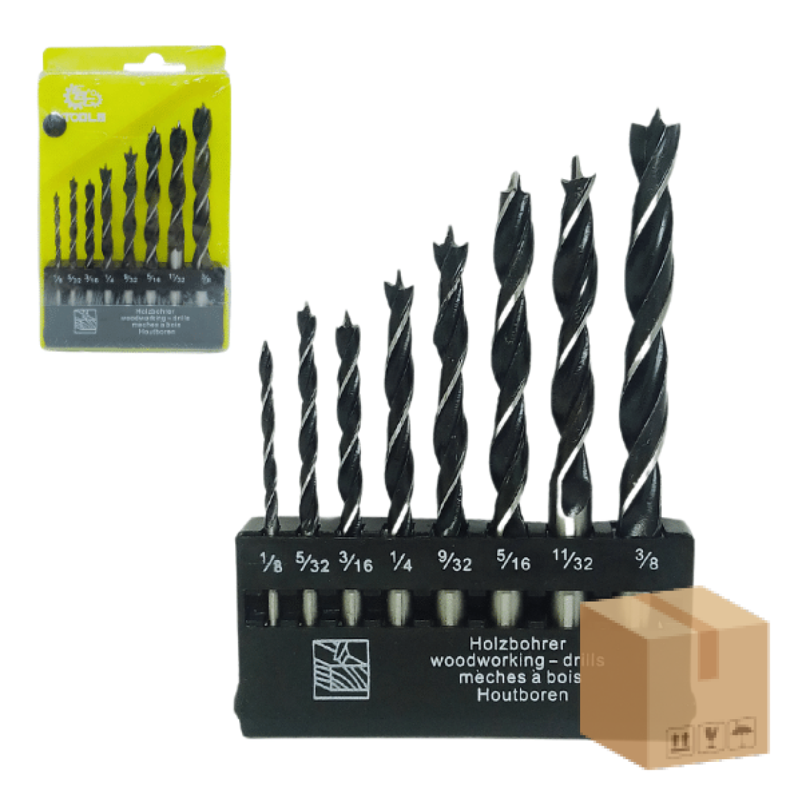 Descrição: Jogo de brocas com 8 peças para perfurações em concreto, alvenaria ou outros materiais resistentes.