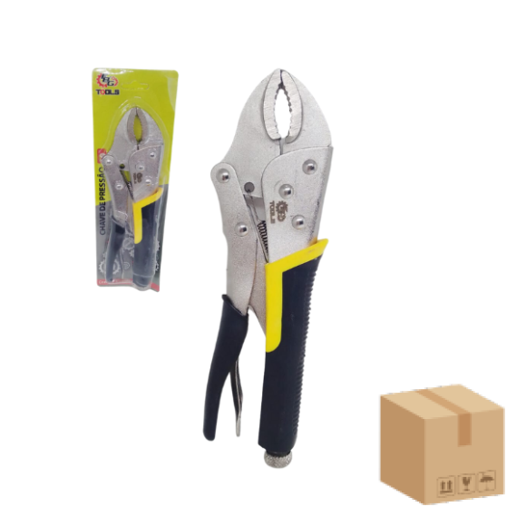 Descrição: Chave de pressão com cabo emborrachado indicada para uma variedade de tarefa, desde prender, apertar parafusos até segurar com mais firmeza. A chave é feita com aço carbono de alta qualidade, forte e durável. Cabo emborrachado para proporcionar um aperto confortável e seguro. Mandibulas curvas com 4 pontos sobre porcas e parafusos de contato para maior pressão. Alavanca de rápida liberação.