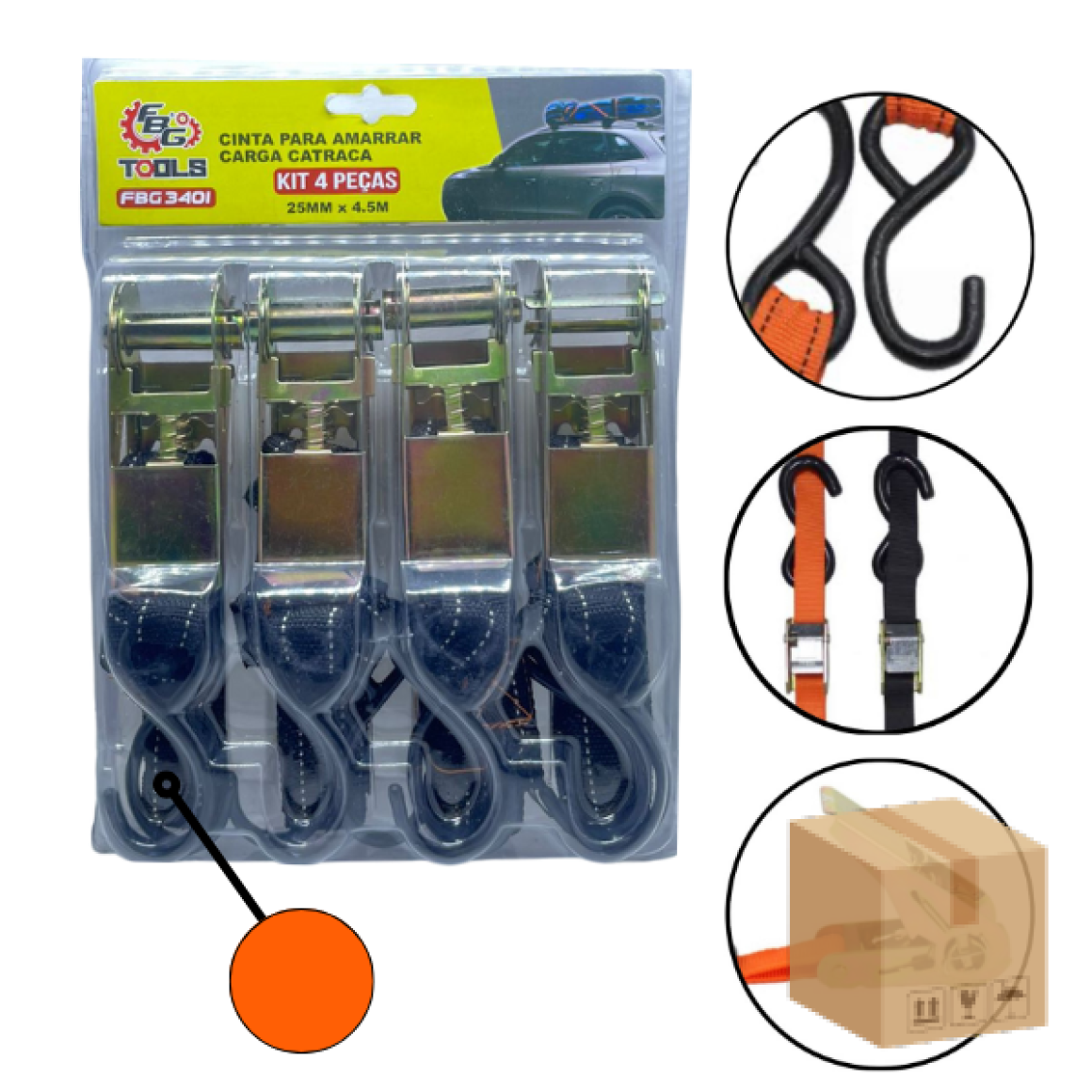 FBG-M 3401 KIT 4 PÇ CINTA P/ AMARRA CARGA CATRACA 2,5M X 4,5CM