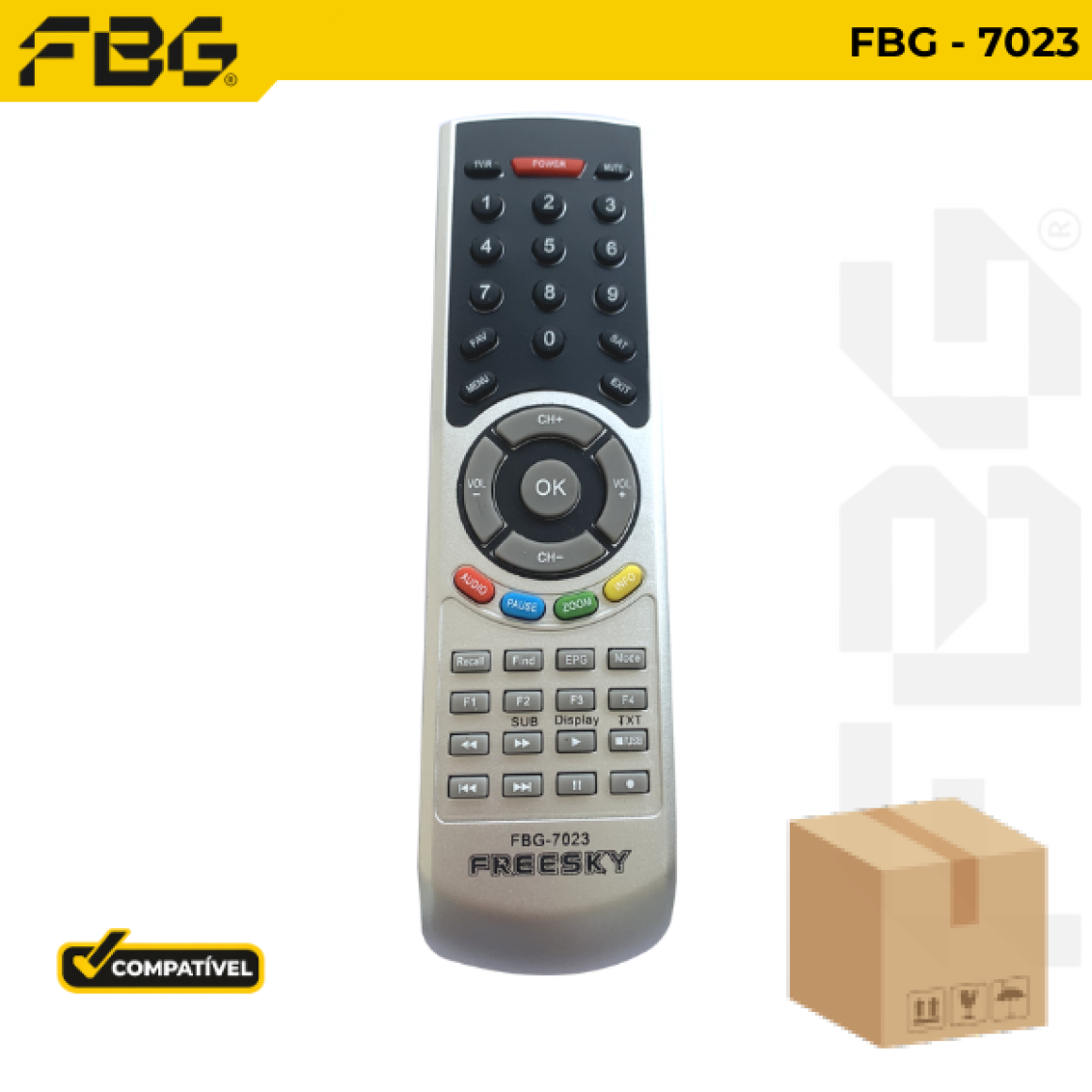 O Controle Remoto da FBG da foi projetado para oferecer praticidade, qualidade e durabilidade. Fabricado com materiais de alta qualidade, ele possui teclas macias, plástico resistente e um LED transmissor com excelente tempo de resposta, garantindo uma experiência de uso rápida e eficiente.