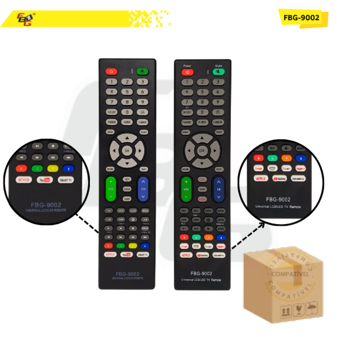 Controle Remoto Lcd Compatível com Universal com teclas Youtube e Netflix - Modelo FBG- 9002