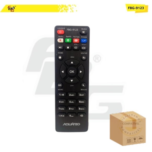Compatibilidade: Controle remoto compatível com receptor Aquário - Possui as teclas: Netflix, Spotify, Youtube e Amazon