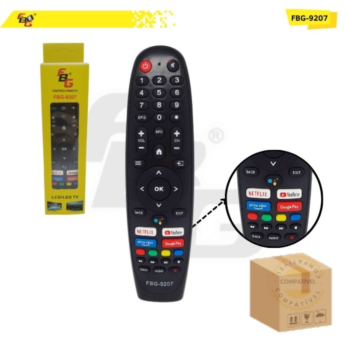 O Controle Remoto da FBG da foi projetado para oferecer praticidade, qualidade e durabilidade. Fabricado com materiais de alta qualidade, ele possui teclas macias, plástico resistente e um LED transmissor com excelente tempo de resposta, garantindo uma experiência de uso rápida e eficiente.