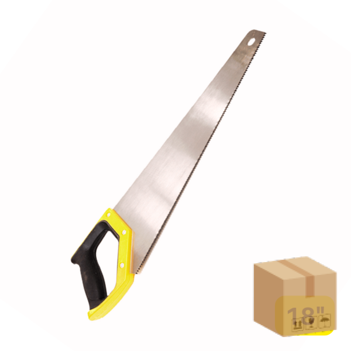 Descrição: Serrote de 53cm. Serra de 46cm com 7 dentes por polegada. Alça plástica ergonômica. Fabricado com lâmina de aço de alto carbono. Endurecido para HRC52 e corte a jato.