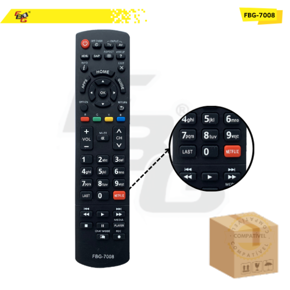 Controle Remoto compatível com TV Panasonic - Modelo FBG-7008
