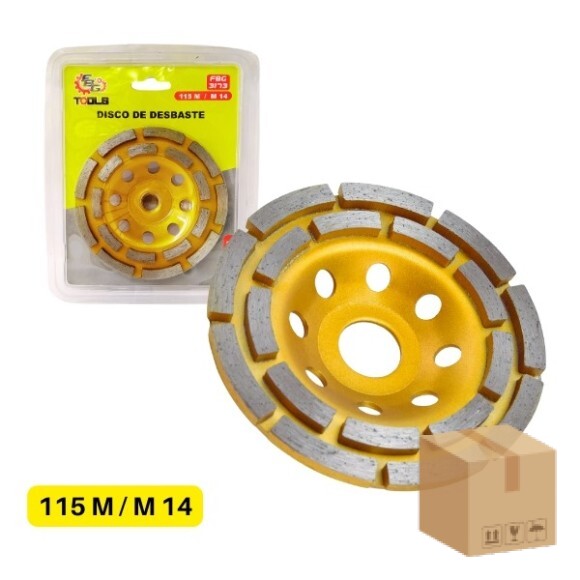 Descrição: Disco de desbaste é parte fundamental de muitas ferramentas de polir, como esmilhadeiras e politriz. Disco de desbaste de concreto com diamante. Turbo de 115mm. Diâmetro: 115x14mm. Eixo: M14
