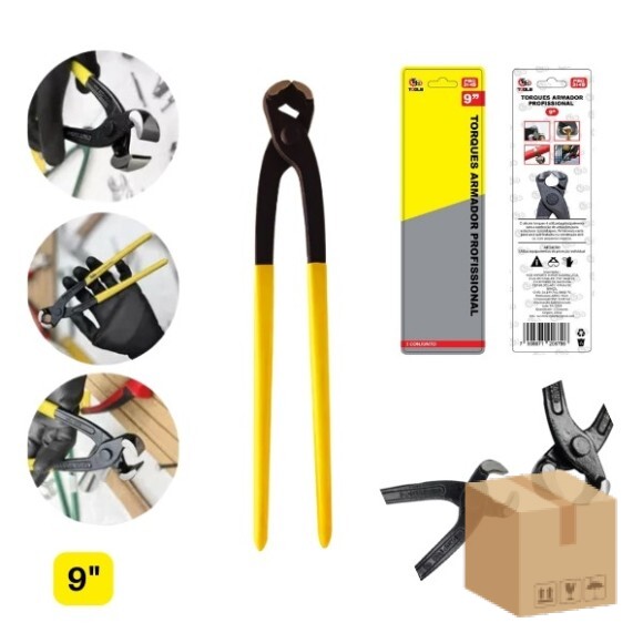 Descrição: Alicate de tamanho 9´´ com 23 cm e cabo emborrachado. O alicate torques é utilizado principalmente para a confecção de armações para estruturas concretagem.