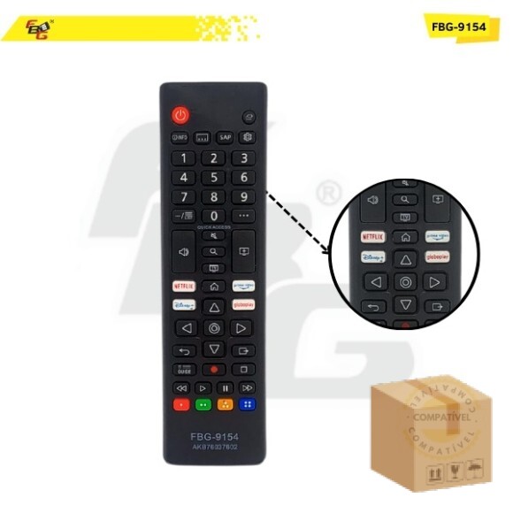 Compatibilidade: Controle remoto compatível com Tv Smart LG - Possui teclas: Netflix, Prime Video, Disney e Globoplay