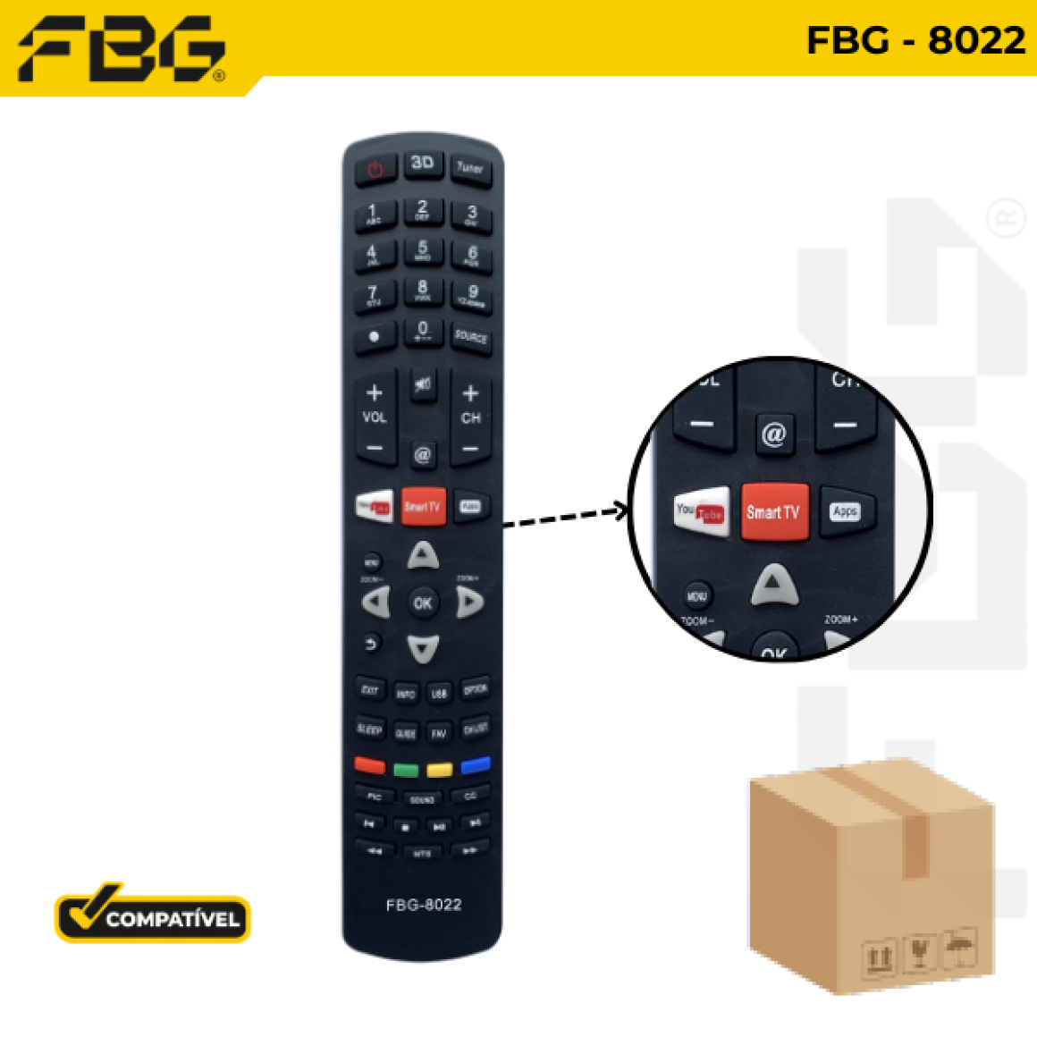 FBG-M 8022 CONTROLE COMPATÍVEL C/ SMART PHILCO C/ YOUTUBE E NETFLIX